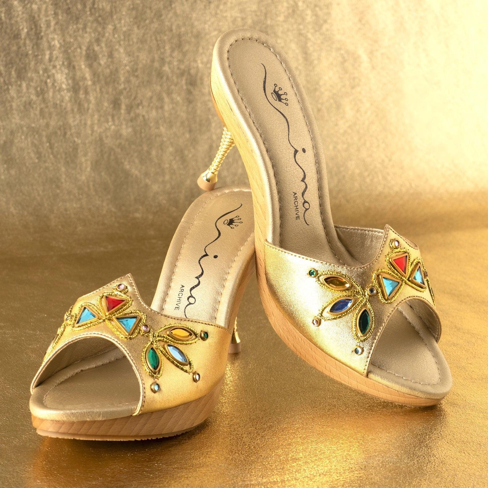 Feeling Palm Royale? Then step into elegance and comfort with the Delight Mule, blending vintage-inspired design with modern comfort. Featuring a 3-1/2″ heel and a 3/4″ platform, these slip-on sandals provide height without sacrificing comfort. The almond-shaped toe and embellished upper make them a statement piece, while the bent wood platform and ABS heel add vintage charm. With synthetic lining and a rubber outsole, they’re built for all-day wear. To custom order in your size, contact us here.