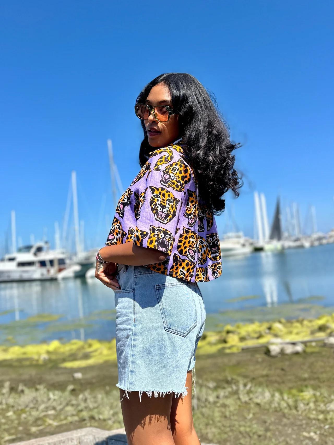 The linen Olivia top is easy breezy and cute! It has a boxy and oversized silhouette, cropped length, and dropped shoulder seams. It has a nice flat laying collar and buttons all the way up! It’s running a tad big, so we recommend sizing down on this one. Her 5 oz linen is super breathable, durable, and absorbent (perfect for those hot humid summer days!). Our linen is wet printed, which gives it a softer hand feel, and it does soften with wear and wash. Other reasons to love it- it’s luxurious, 100% biodegradable, moth resistant, and built to last! Featuring the artwork of Robin Eisenberg. 100% Linen. To help preserve the quality of your linen garment, only wash when it truly needs it. Then, turn it inside out and hand wash with cold water and a gentle detergent. Line dry. Sustainably made in California from start to finish!